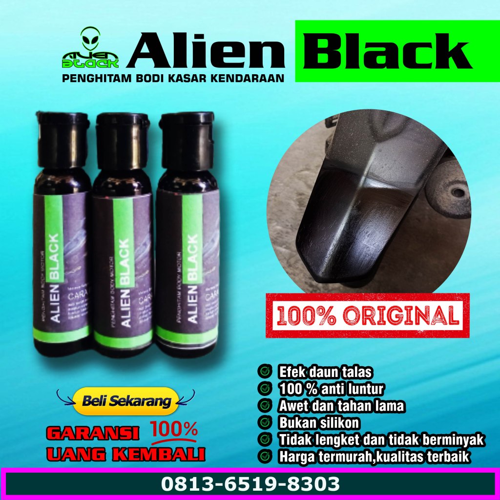 ALIEN BLACK diformulasikan untuk menjadi penghitam body motor dan mobil dengan hasil HITAM natural dengan efek daun talas.